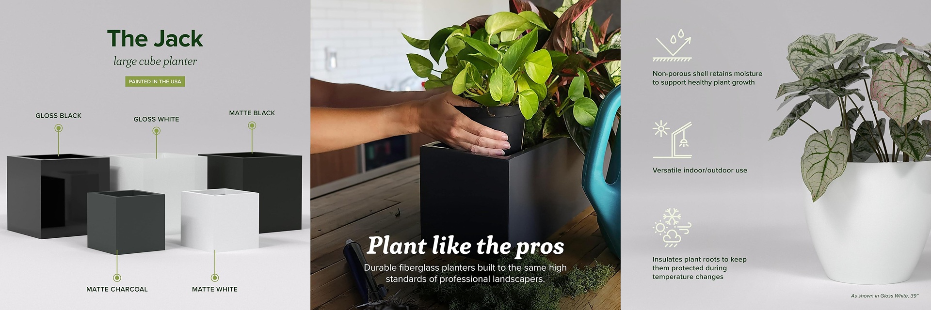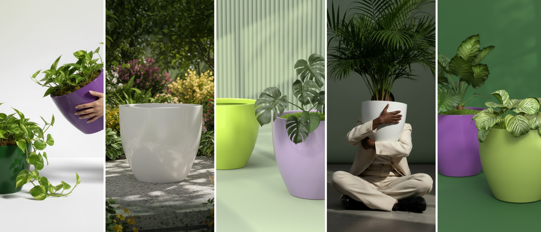 The existing branding had a logo and a color palette of green, black, and grey, but no visual language to build on. It was functional, not aspirational. For a product line spanning large-scale planters at a premium price point, that gap mattered.