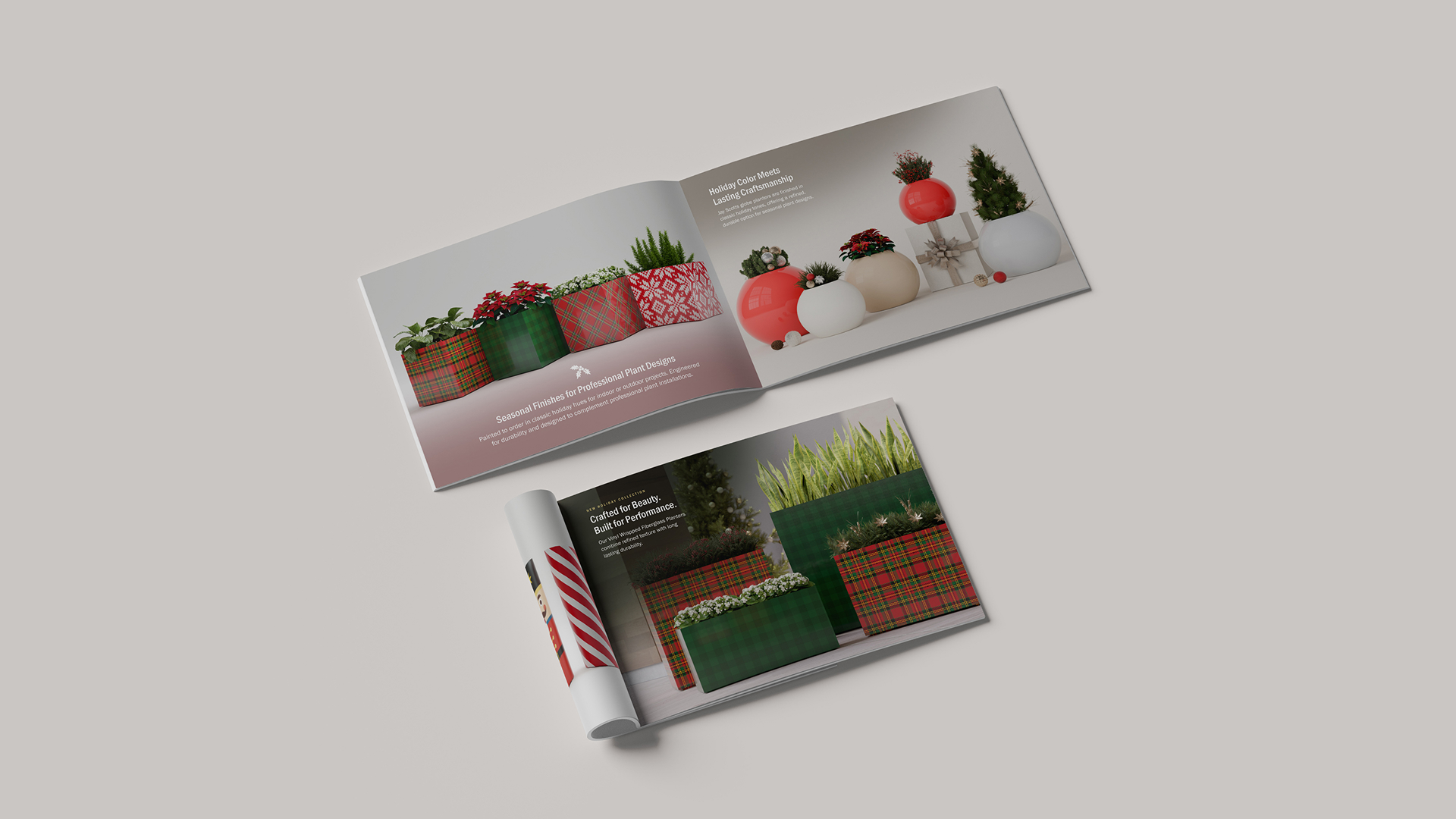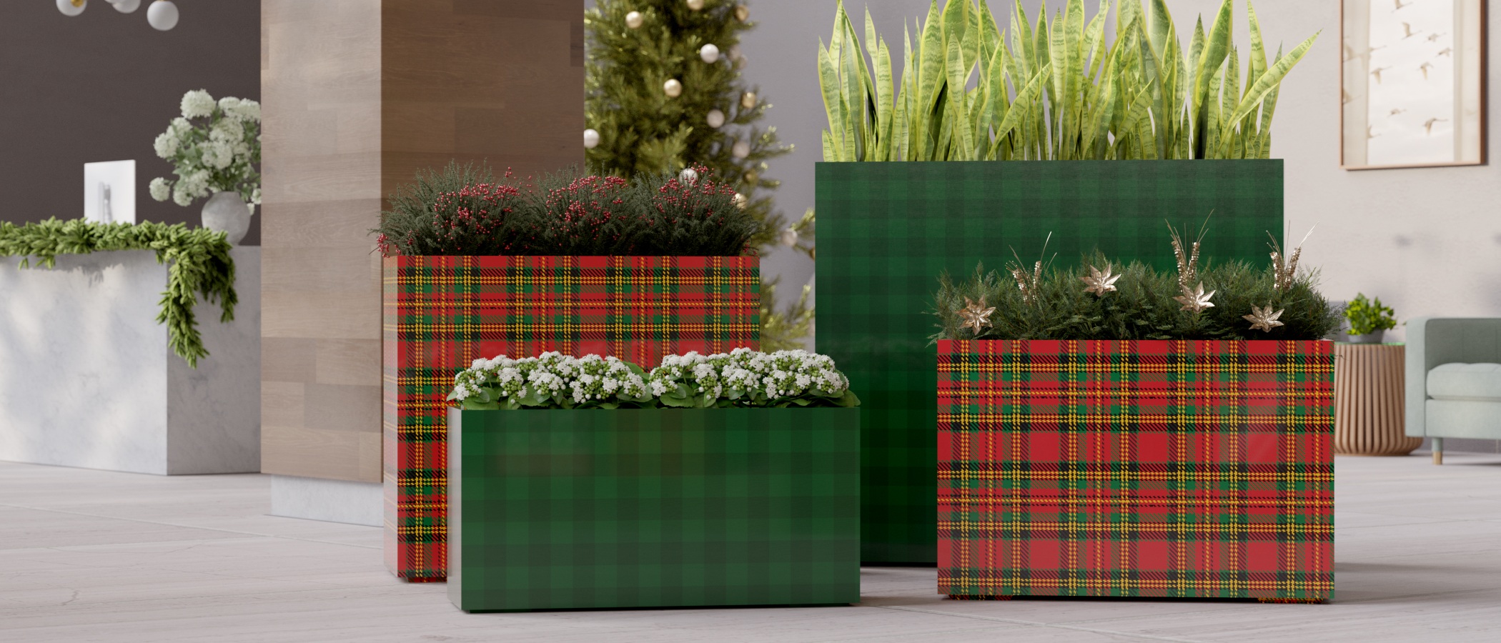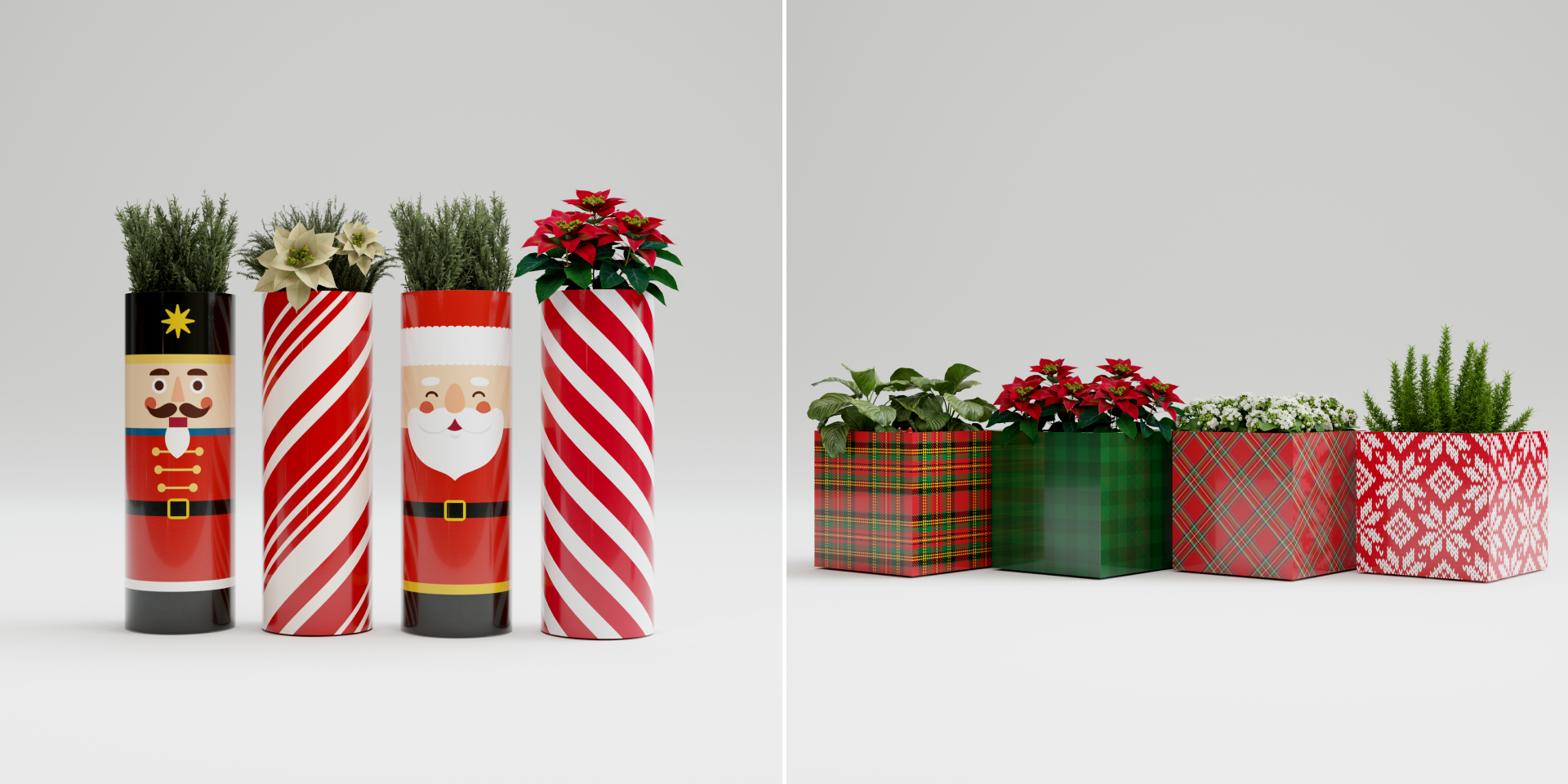 The visual direction balanced festive appeal with the restraint that professional and commercial environments require. Patterns needed to feel holiday-appropriate without limiting where the planters could be placed.