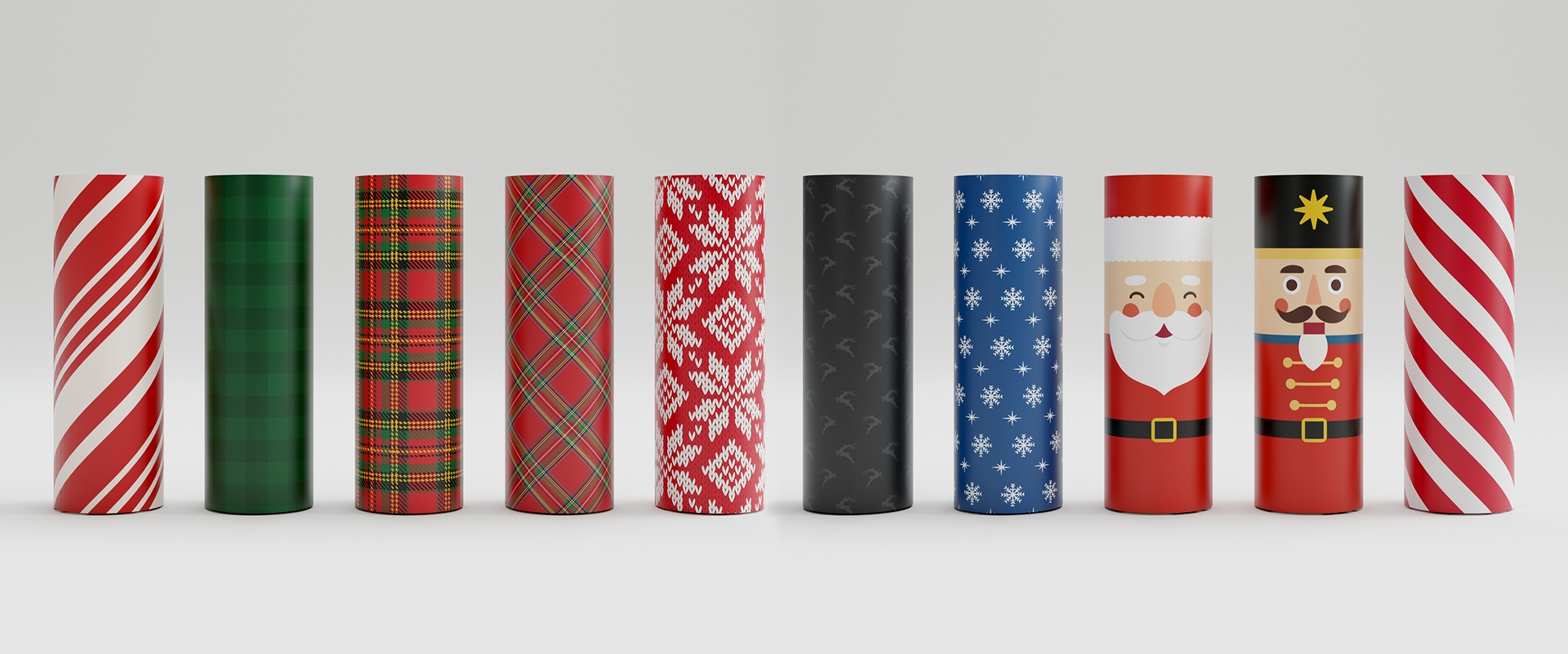 When a new holiday vinyl wrap collection needed to go to market before physical samples existed, 3D rendering filled the gap. I developed 13 wrap patterns, adapting stock graphics to our colorways and creating original character illustrations, then applied them across 24 planter styles to produce 60-plus optimized images for web, social, and print. The renders served as both the marketing assets for the campaign launch and the foundation for vinyl wrap production files.